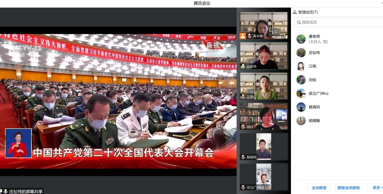 学院党总支委员线上集中收看二十大开幕会(黄凤娟 提供)