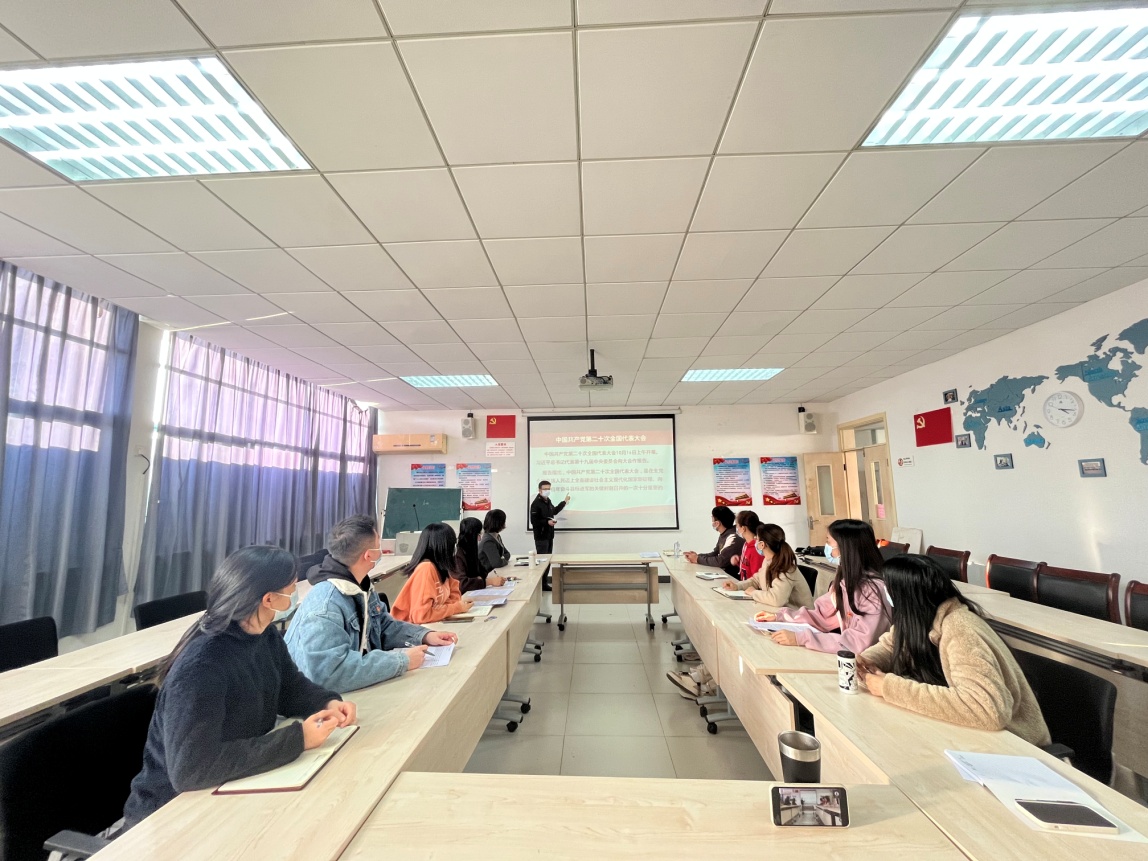 本网讯(记者 杨海圳)为引导学院教工党员全面深入学习党的二十大精神,国际商学院院长、教工党支部书记吴立广教授于12月7日下午在A6-505作《学习宣传贯彻党的二十大精神,为建设教育强国贡献力量》理论宣讲,全体教工党员以线上线下形式参会。