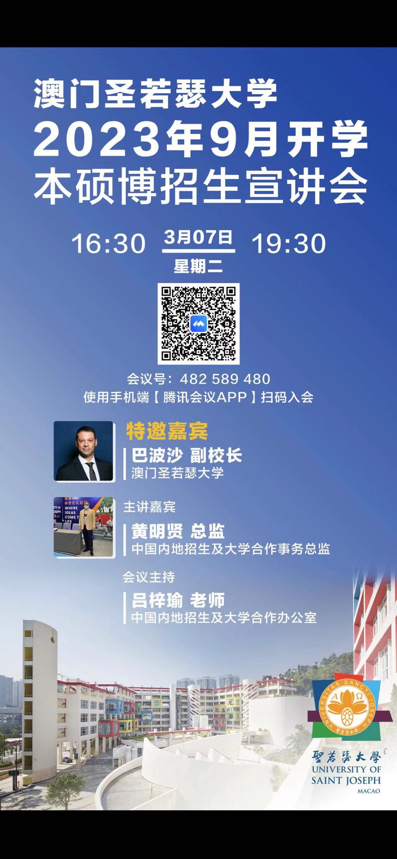 澳门圣若瑟2023年9月开学本硕博招生宣讲会
