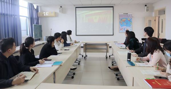 会上,刘佳作《专题学习习近平总书记关于主题教育的重要讲话精神》报告,学院理论学习中心组全体成员参加集体学习。刘佳从时代意义、学习目的、根本任务、学习方法等方面,为大家如何进一步深入学习领会习近平新时代中国特色社会主义思想提供指导和帮助。她表示,开展这次主题教育,是统一全党思想意志行动、始终保持党的强大凝聚力和战斗力的必然要求,理论学习中心组全体成员们要率先垂范,带头深学细照笃行。随后,她传达了学校党委学习贯彻习近平新时代中国特色社会主义思想主题教育的部署与要求,强调师生要以“认真学,积极动,扎实干”为行动方针来开展主题教育,认真落实主题教育“学思想、强党性、重实践、建新功”总要求。