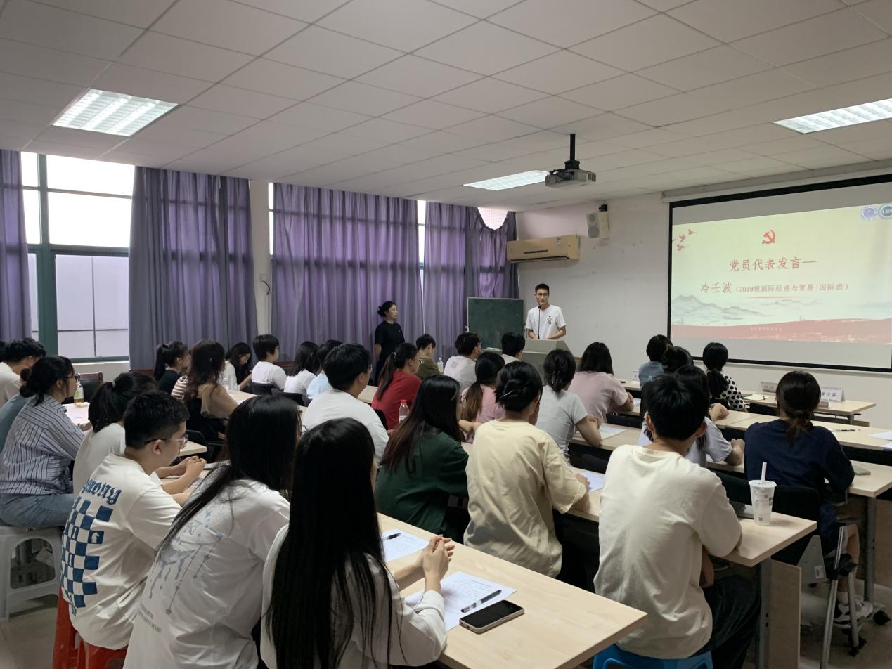 即将离别之际,毕业生党员代表也结合大学期间参加学生社团组织、参与党组织生活建设等多角度畅谈了离别感言,表达自己对党组织培养和母校教育的感激之情。学生第一党支部党员冷壬波谈到:“四年来为学院学生党务管理中心和团委工作服务,从工作人员到团委副书记,工作中有遗憾也有收获,不变的是党员的初心,步入社会后,我依然会以脚踏实地的态度不断地向社会、向人民群众学习。”学生第二党支部党员蔡楚华引用梁启超先生的“人生须知负责任的苦处,才能知道尽责任的乐趣”这一经典语录讲述了作为一名党员的义务,表示未来也将始终牢记党员身份,明确责任担当,积极履行使命。