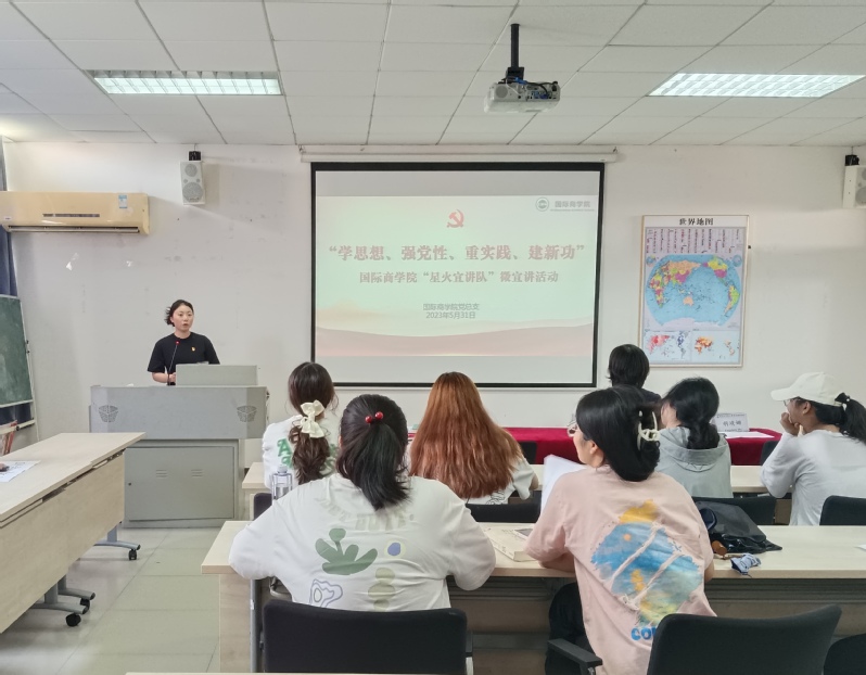 本网讯(记者 庄祉祎 余洋)5月31日下午,国际商学院学生“星火宣讲队”在A6-505举行学生“星火宣讲队”微党课宣讲活动,9位宣讲队员从青年视角宣传和讲解党的理论。国际商学院党总支书记刘佳出席并担任评委,活动由学院党总支委员庄祉祎主持。