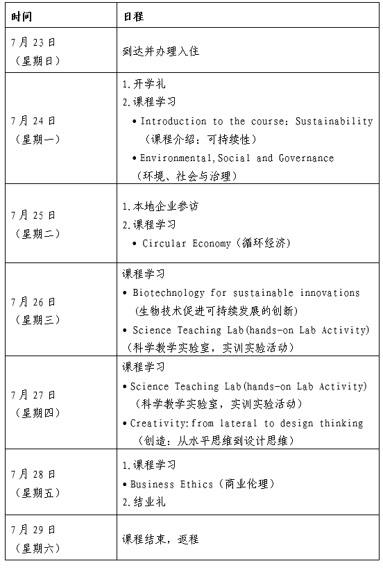 2.活动目的:通过密集性学习可持续性、循环经济、生物技术、环境、社会与治理五个主题课程,帮助学生进一步了解科学与商业经济规则在不同领域的可结合程度,从而较为深入地认识到可持续发展在未来的发展趋势。