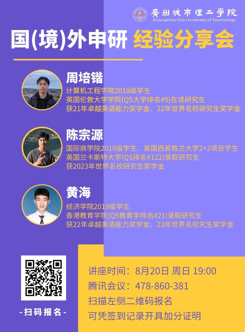 优秀师兄说 | 8月20日(周日)晚上国境外申研经验分享会来啦
