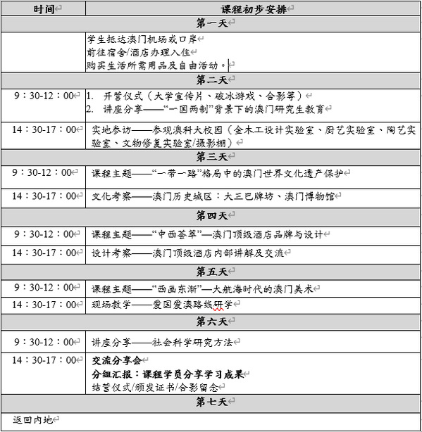 本课程围绕 “视觉审美与艺术创意”主题,是为内地在校大学生开设的短期赴澳门学习项目。课程将以“视觉洞察”为切入点,融入视觉审美理论和创新思维方法,采用作品赏析、实地参观和理论讲解相结合的教学方式,使学员直接感触到艺术作品的创作灵感与创作过程,全方位地提升学员对艺术审美的感知力、创造力、共情力和理解力。