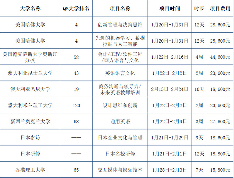 2024年寒假,美国哈佛大学、澳大利亚悉尼大学、意大利米兰理工学院、新西兰奥克兰大学等一批世界名校将举行短期交流项目,为我校学生提供参加赴世界顶尖名校学习交流的机会,拓宽学生的国际视野,提升学生的学术能力、英语能力、跨文化沟通能力与全球胜任力,现将项目报名通知如下: