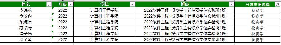 根据《广州城市理工学院主辅修双学位实验班管理办法(2023年修订)》和《广州城市理工学院计算机工程学院/国际商学院“软件工程-投资学”主辅修双学位实验班管理实施细则(试行)》的相关规定,现对6名学生选择投资学专业作为主修专业的情况进行公示。