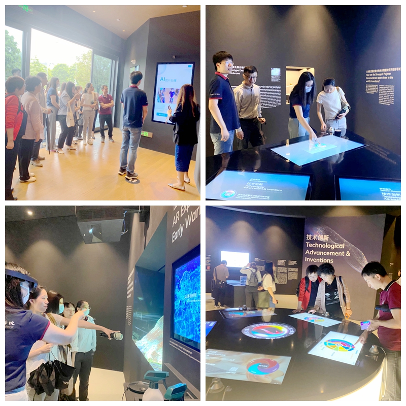 参访学习的第一站设在港科大(广州)的访客中心。老师们在全方位环绕屏幕中沉浸式欣赏港科大(广州)宣传片,到技术展示区域了解大学在科技领域结出的累累硕果,并在技术落地体验区深入互动,许多贴近日常生活的技术体验项目受到好评。