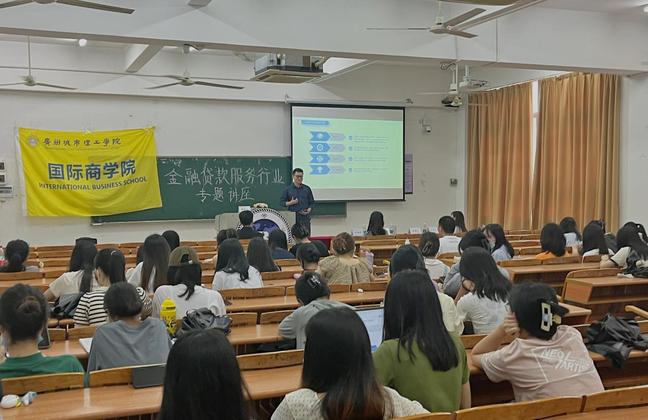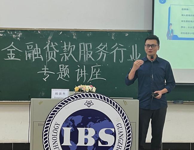 本网讯(记者 时弋博 黄增光)为增强学生对金融贷款服务行业的深度了解,帮助学生扩展专业视野,引导学生树立职业规划意识,5月18日下午,国际商学院特邀广州市粤荣华企业服务有限公司(以下简称“粤荣华”)集团副总经理赖强年先生在A5-105开展“金融贷款服务行业专题讲座”。粤荣华集团副总经理赖强年、校企合作办秘书周诗婷,国际商学院相关负责老师及2021级普本、2022级专升本学生参加讲座。