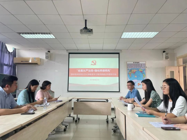 9月22日,国际商学院党总支围绕“全面从严治党•强化师德师风”主题,开展了纪律教育学习暨师德建设专题学习会,会议由学院党总支书记刘佳主持,院长吴立广及学院全体党总支委员参会。