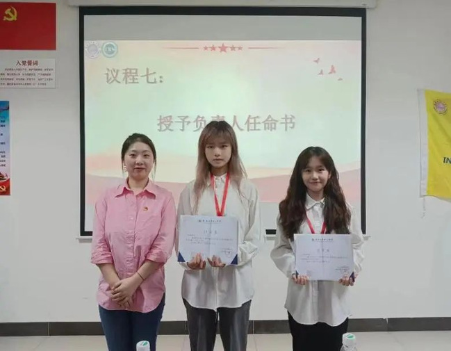 本网讯(记者 张燕华、刘顺顺)为推动学生党务组织向更深层次发展,适应新形势,启程新征程,11月18日晚,国际商学院学生党务管理中心第二届换届大会暨第一次全体大会在A6-505举行。学院党总支书记刘佳、党总支副书记胡靖姗、学生第一党支部书记庄祉祎、教工党支部副书记杨海圳以及学生党务管理中心全体成员参与本次会议。会议由学生党员蒋丹主持。