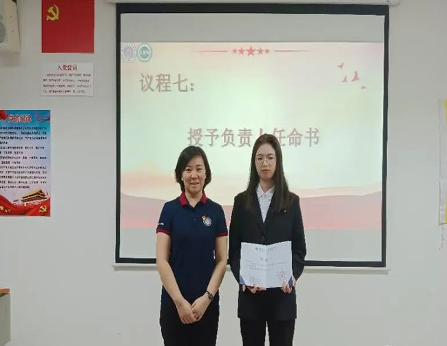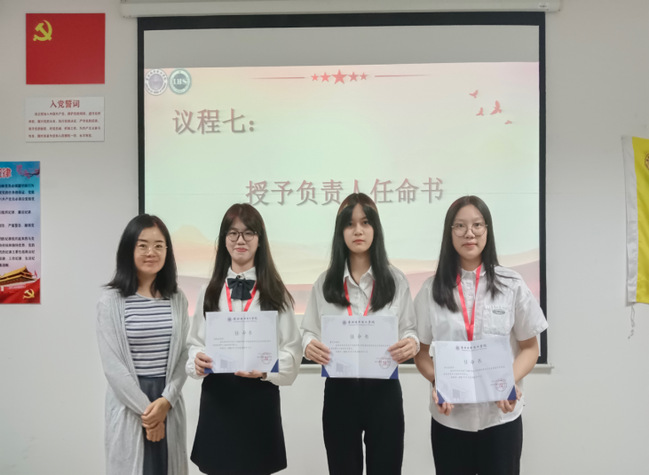 随后,宣布新一届干部名单。刘佳书记、胡靖姗、庄祉祎、杨海圳老师分别为新任干部颁发任命书。.