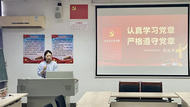 5月17日,国际商学院学生第一党支部书记庄祉祎围绕党章为发展对象进行培训。庄老师以四个意识为引,带领发展对象从党章的发展历程、十九大对党章的修改、学习贯彻党章,全面从严治党等几方面来深刻学习党章,并强调学习党章要学好总纲,总纲是党章的核心,是党的基本政治主张,是党制定各方面方针政策的根本依据。希望在追求共产主义的道路上,每一位发展对象要不断的自我革命、自我批评、自我净化,争取早日成为一名合格党员。