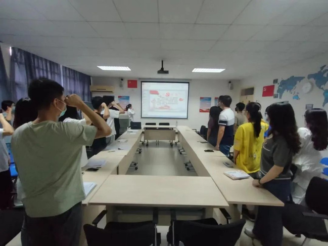 本网讯(记者 李兆凤)为全面贯彻落实新时代党的建设要求,做好预备党员的确定和考察工作,加强党的建设。2022年5月26日下午,国际商学院学生第一党支部在学校A6-505召开了第三十期接收预备党员会议,讨论表决关于潘政等5名发展对象转为预备党员事宜。国际商学院学生第一党支部书记庄祉祎、党总支宣传委员黄凤娟、党总支统战委员江艳、学生第一党支部全体正式党员、预备党员及发展对象线上线下共46人参会,会议由庄祉祎老师主持。