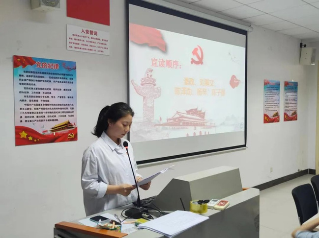 会议第七项,新发展预备党员进行表态,反思目前自身存在的不足,表达了日后会在学习、工作等方面继续努力,认真遵守党章党规,提高政治理论学习和党性修养。最后,庄祉祎老师对各位同志表示祝贺,并指出预备党员在预备期间应该继续加强学习,在工作岗位做出成绩,时刻严格要求自己。