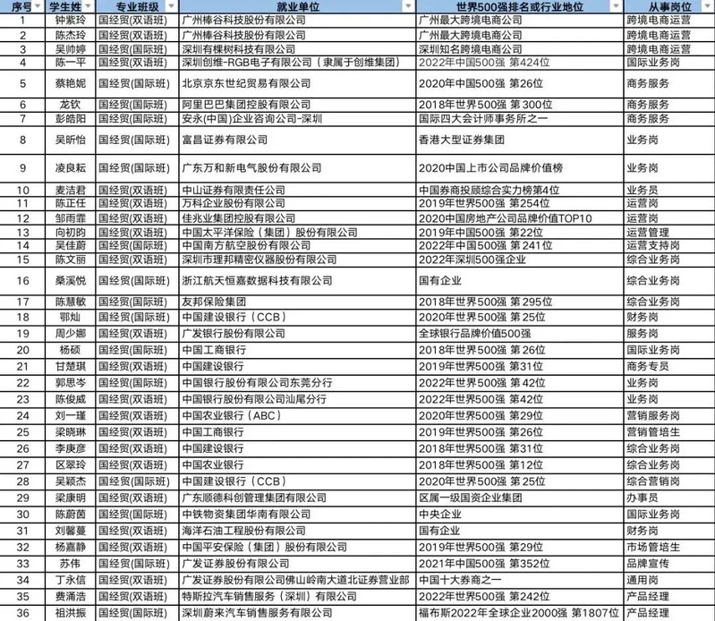 毕业生可在各类企业的国际业务部门、外贸公司、国际物流公司、报关行业、涉外保险公司、海关等从事涉外经贸工作;或在银行、证券公司、基金公司等金融机构从事金融交易、国际结算、融资租赁等业务;或在全球知名跨境电商企业、主流跨境电商平台就职或自主创业;或在国内攻读硕士研究生;或出国留学深造。