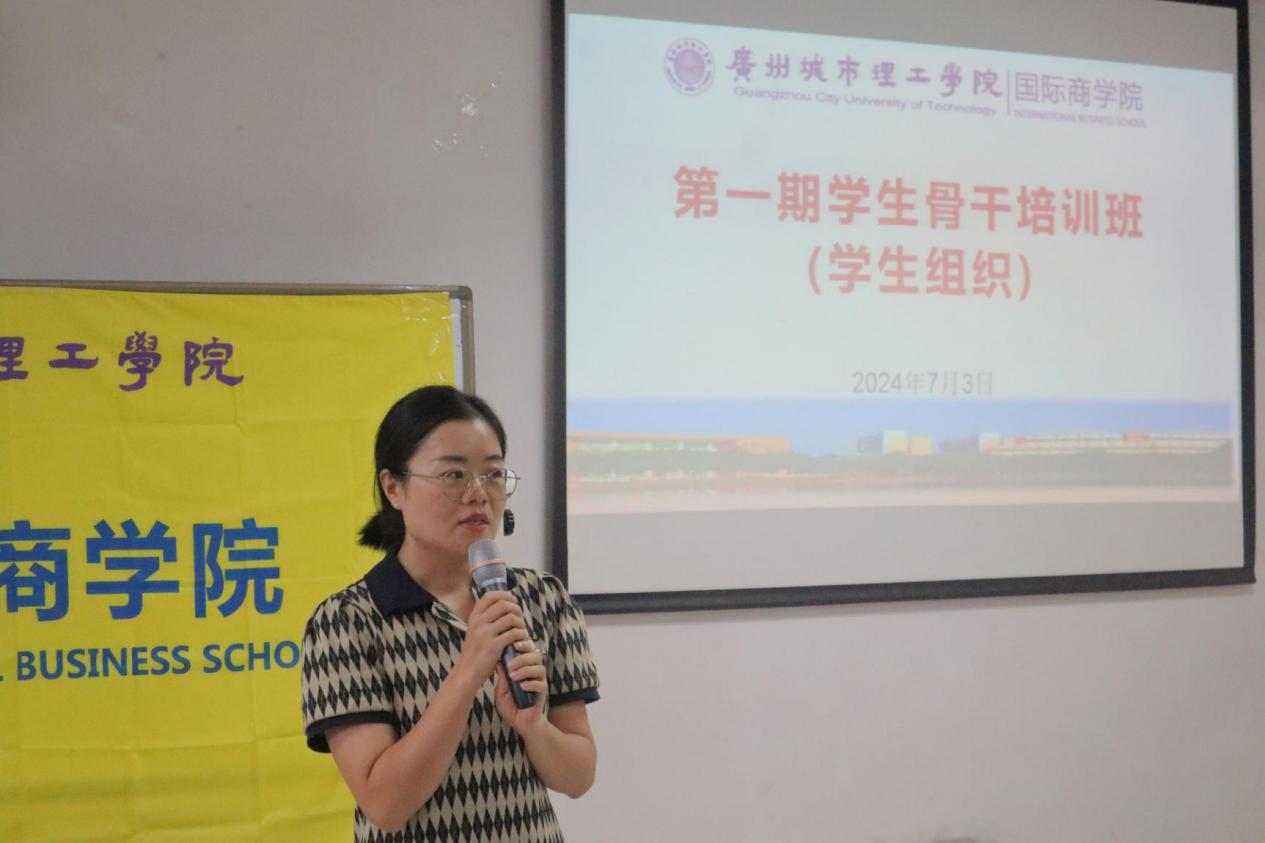 本网讯(记者 黄增光 陈慧琳)为进一步促进学生“学业、职业、就业”三业发展,提升学生骨干综合素质能力,7月3日,国际商学院在A6-308举行“学生职业发展促进会(以下简称学促会)成立大会暨第一期学生骨干培训班”,学院党总支副书记梁伟滔、学工办全体老师、全体学生骨干参会。