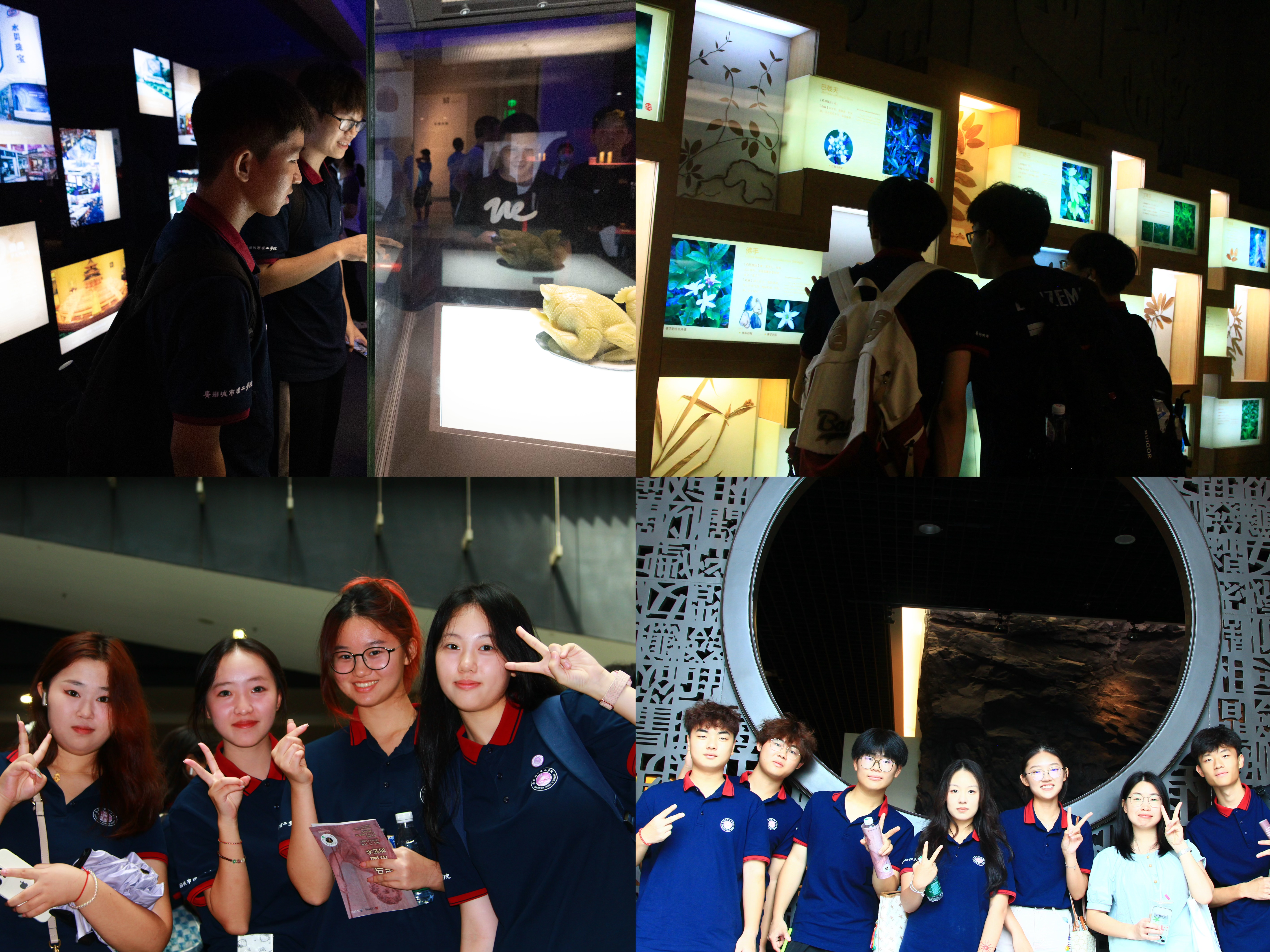 伴着微微的秋风,师生一同前往广东省博物馆的展厅,共同探索岭南文化。师生们首先参观了“广东历史文化陈列”展厅,这里展出了从马坝人到新中国成立的广东历史文化变迁,通过文物、图片、油画、雕塑等丰富的展陈手段,全方位地展现了广东的历史文化。在“潮州木雕艺术展览”中,学生们被精美的木雕艺术深深吸引,这些艺术品不仅展示了潮州木雕的精湛技艺,也反映了岭南地区丰富的民俗文化。每一件展品都承载着岭南地区的历史变迁和文化发展,让学生们仿佛穿越了时空,感受到了历史的厚重。