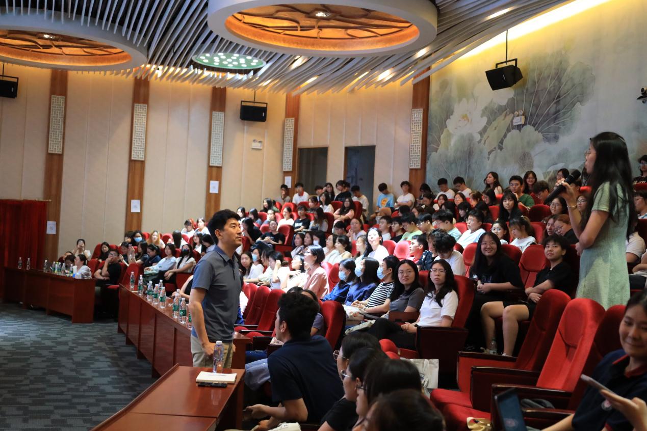 随后,时丽娜教授从语言学和文化研究的角度,结合多个生动的案例和视频,详细剖析了跨文化交际中的障碍与误解。她以丰富的教学经验与学术背景,向师生们展示了全球化背景下打破文化隔阂、实现高效沟通。时教授的讲座内容紧凑而有趣,极大地激发了学生们的兴趣,使大家更加深入地理解了跨文化交流的实质。