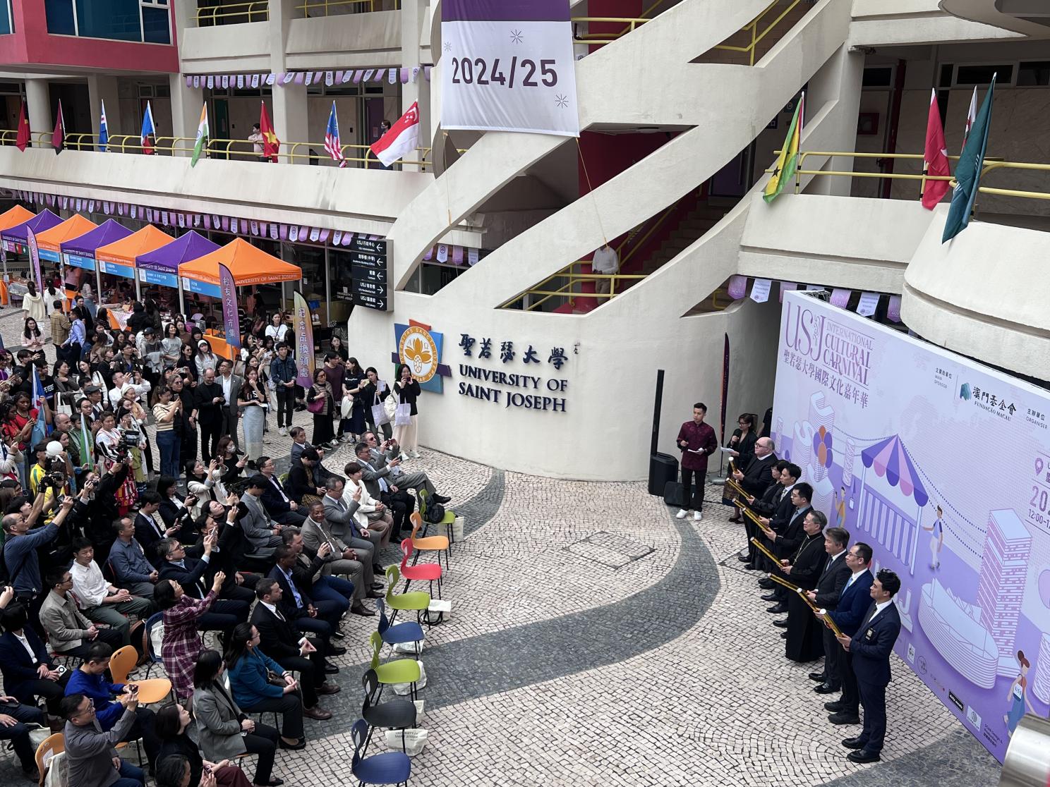 本网讯(记者 韦晓燕 王一旭)为增进我校学生对澳门圣若瑟大学(以下简称“圣大”)办学特色、校园环境及教学设备的深入了解,搭建跨文化交流平台,感受澳门高校的学习氛围,3月2日,我校应邀参加圣大一年一度的国际文化嘉年华,国际商学院、电气工程学院、管理学院、外国语学院共7名学生代表与2名教师代表参与。