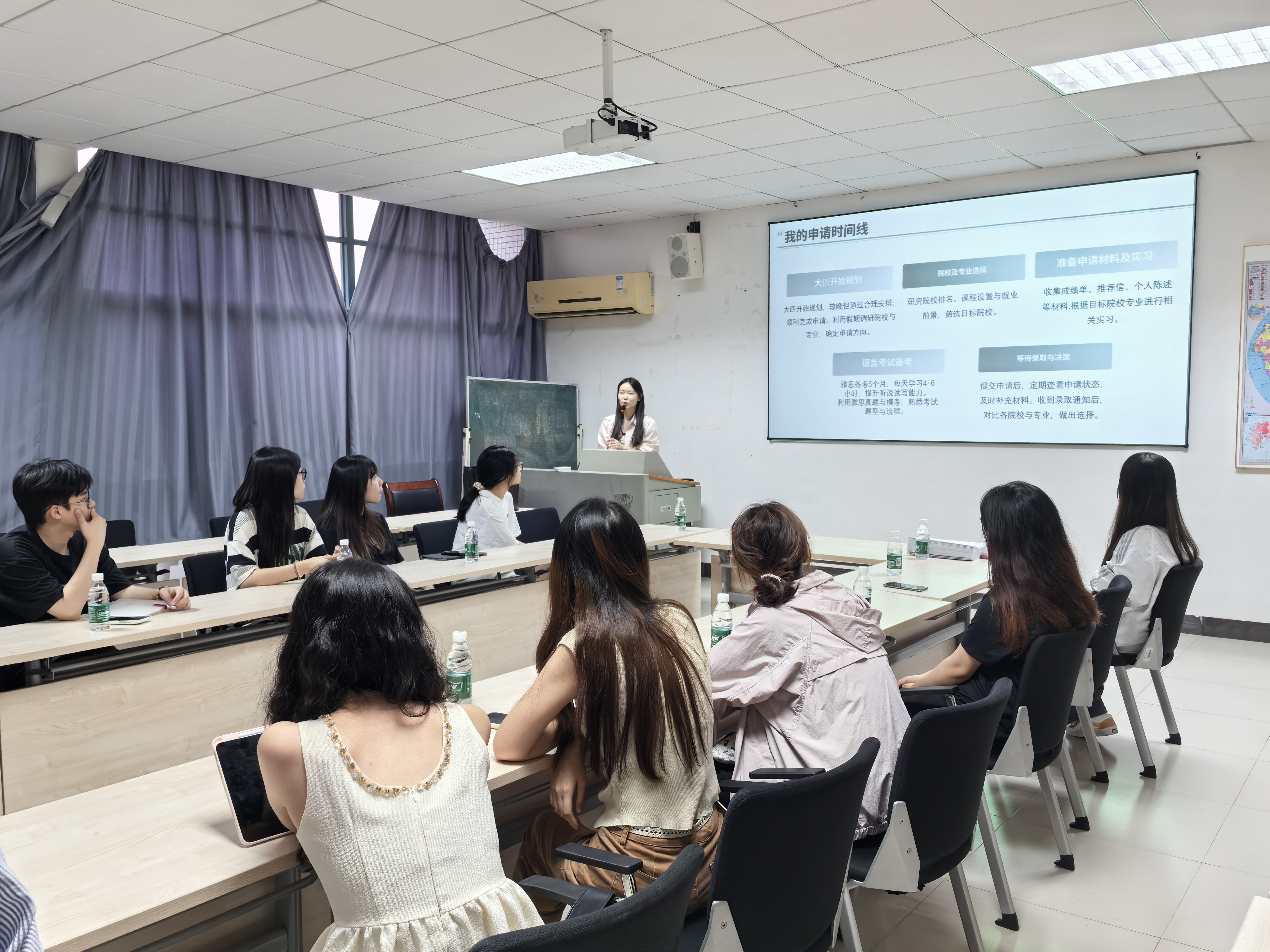 分享结束后,参会的同学们积极向师兄师姐请教经验,提出“实习公司的选择”“雅思考试时间安排”“跨专业申请注意事项”等问题。学长学姐结合自身经验逐一解答,并强调“提前规划”与“针对性准备”是脱颖而出的关键。活动现场还介绍了学校与多所海外合作院校的联合培养项目,为学生提供了更多的出国出境升学选择。
