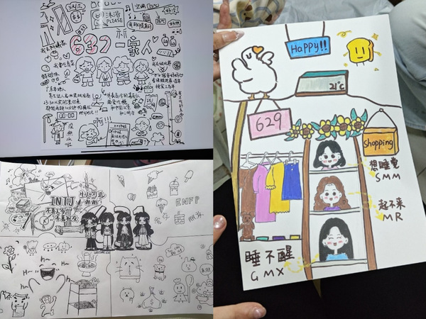 本次宿舍文化节以宿舍为单元,铺展开一幅形式丰富、妙趣横生的活动画卷。同学们宛如被点燃的创意火种,在有限资源中深挖无限可能,全身心投入艺术创作的奇妙旅程。407 宿舍里,同学们的双手灵动飞舞,彩纸、丝线在指尖交织,化作一件件精巧手工,每一处细节都镌刻着用心;414 宿舍中,画笔成为描绘春日的魔法棒,细腻笔触晕染出蓬勃春景,鲜活色彩跃然纸上;628 宿舍凭借乐高积木,搭建起梦幻城堡,每一块积木的拼接,都是对美好未来的期许。各宿舍纷纷拿出看家本领,以独树一帜的方式,尽情展露宿舍的独特风采。