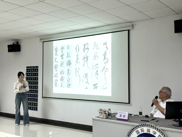 本网讯(记者 焦馨 庄祉祎)4月23日,国际商学院在A8-109举办跨文化专家系列讲座,特邀中国人民大学中国书法与传统文化融合创新中心主任,上海交通大学二级教授周斌以“书法艺术赏析与中国美学”为主题开讲。国际商学院院长安然、党总支副书记梁伟滔出席讲座。通过对中国传统书法艺术的深度赏析,促进师生对中国美学精神的理解与对话,推动师生跨文化能力的提升。活动吸引了包括国际商学院、管理学院和经济学院等80余名师生以及广大书法爱好者参加。