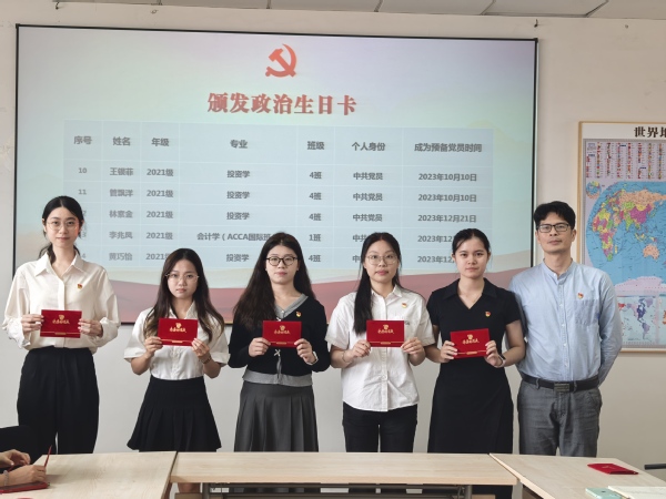 活动特别设置“政治生日”仪式环节,通过一段精心制作的纪念视频,全体毕业生党员共同回顾了从入党宣誓到成长历练的珍贵历程。梁伟滔为每位党员颁发印有入党日期和寄语的“政治生日卡”,并勉励大家“常思初心之源、常修使命之志”。