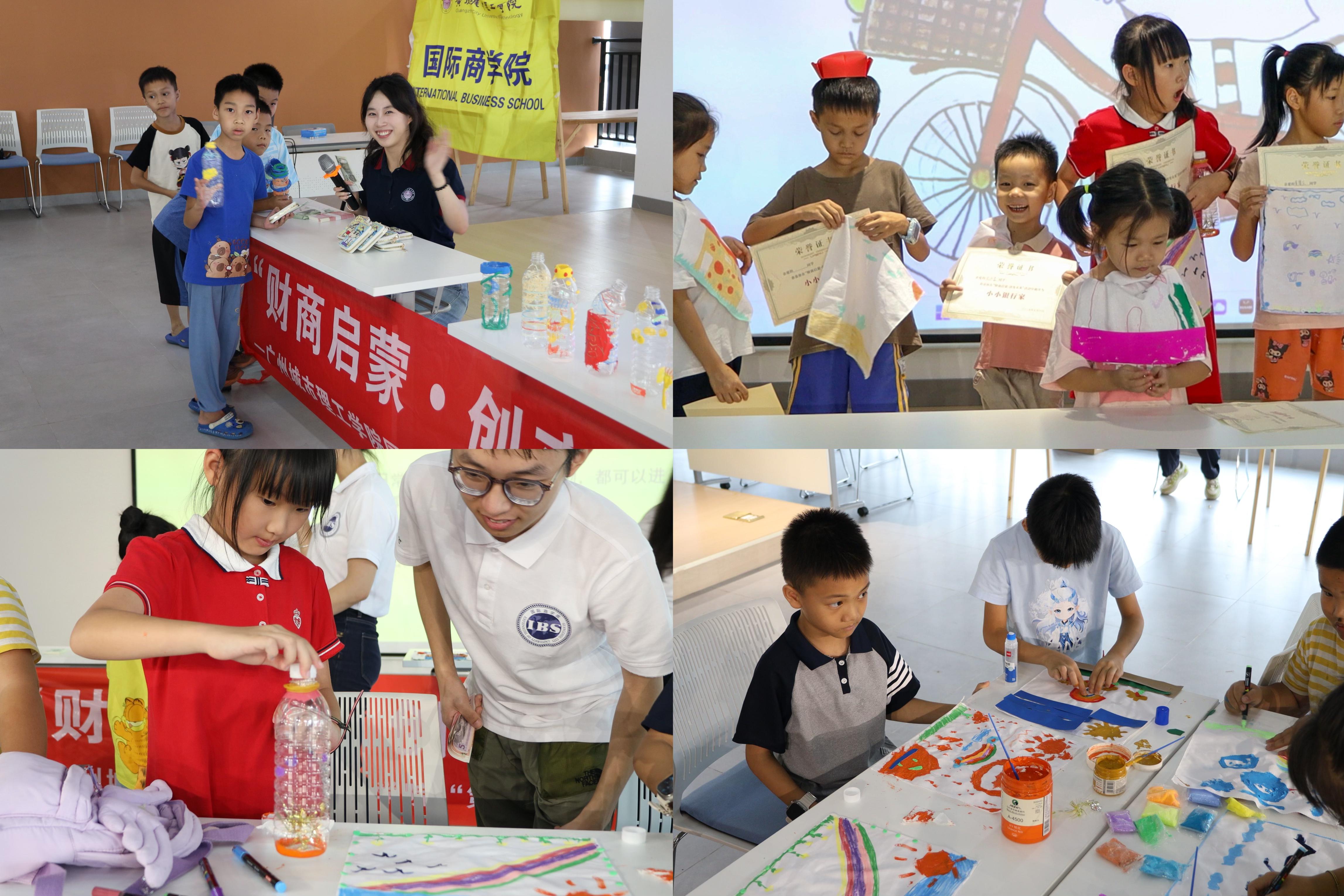 在花都区平龙新时代社区,国际商学院党总支副书记梁伟滔、花山镇陈奇良书记来到现场,对实践团给予鼓励,带队老师夏勇杰全程跟进保障活动开展。首日,实践团为小朋友讲解货币从贝壳到数字货币的演变历程,通过“零花钱大作战”游戏化学习,让孩子们在赚取虚拟货币的过程中理解储蓄、消费、分享、投资(4S)的财商理念;次日,引导孩子们思考资源循环利用价值,开展“变废为宝”手工活动,用虚拟货币购买废旧材料创作,最后为表现优异者颁发“小小银行家”“小小创变家”等证书。此次活动招募推文点击量超300次,吸引20组家庭参与,累计授课超10小时,组织实践活动2场,发放材料及奖品30余件,学生财商知识掌握率达92%,30余件创意作品尽显孩子们的巧思与环保意识。