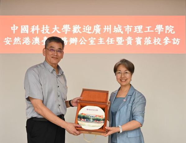 我校向中国科技大学赠送纪念品(陈丽君 摄)