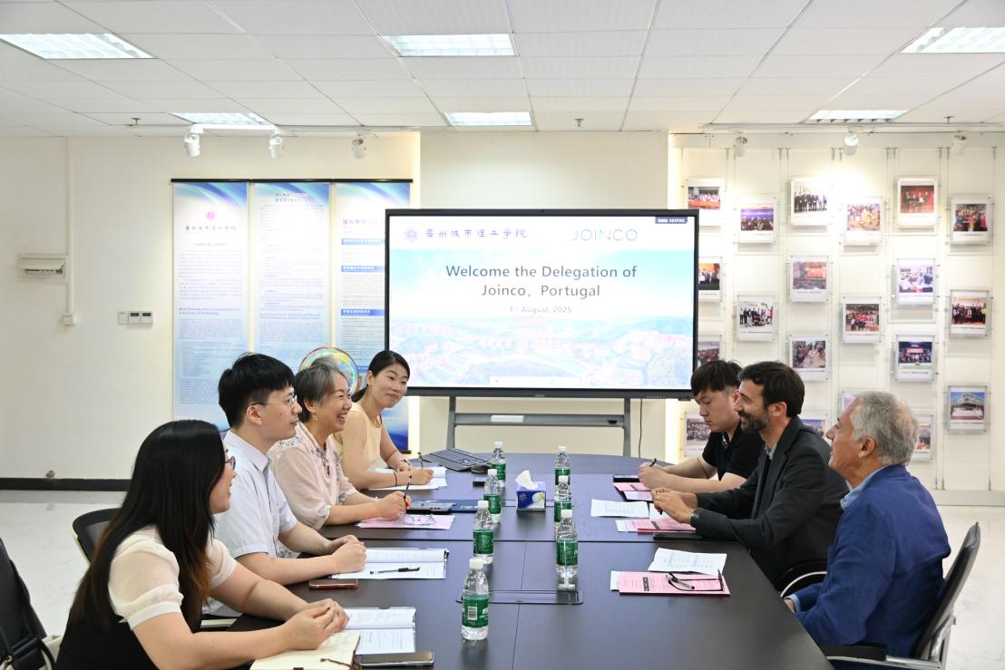 网讯(记者 彭鑫怡 陈少铭)8月1日,葡萄牙跨国企业Joinco公司中国区负责人Tiago Mateus与公司顾问Carlos Jorge Carvalho教授一行访问国际商学院,就学生赴欧实习实践、广交会实战实训以及国际项目联合申报等议题展开深入交流。国际商学院院长兼国际交流与合作处处长安然、国际商学院副院长陈少铭等陪同接待并举行座谈会。
