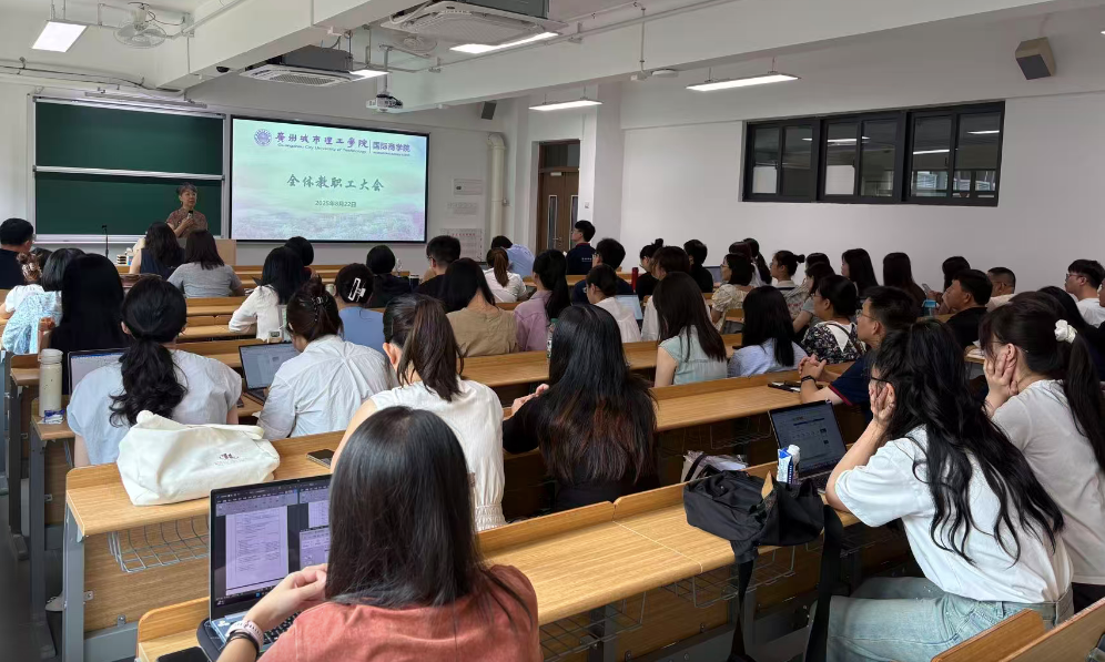 本网讯(记者 黄凤娟)8月22日上午,国际商学院在A11-202召开全体教职工大会,系统部署新学期教学科研重点工作,同步开展师德师风专题教育。学院院长安然、党总支副书记梁伟滔、副院长陈少铭及全体教职工参会。