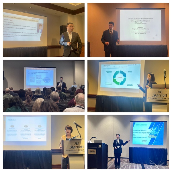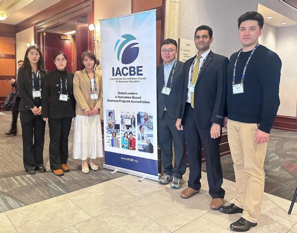 本网讯(记者 彭鑫怡 陈丽君)4月3日至7日,国际商科教育认证委员会(下称“IACBE”)2025年全球年会在美国印第安纳波利斯市举行,会议以“商科教学的新愿景(Business Education in a Changing Landscape)”为主题,吸引了多个国家与地区的高校和商科教育机构代表参与,共同探讨在快速变化的全球商业环境下商科教育的发展方向和创新路径。由国际商学院杨明晖教授担任团长,我校派出六人学术代表团应邀参会并作平行会场主题发言。成员包括国际商学院王金鹏副教授、Ahsan Akbar副教授、彭鑫怡博士,以及经济学院徐岑老师、陈笑映老师。