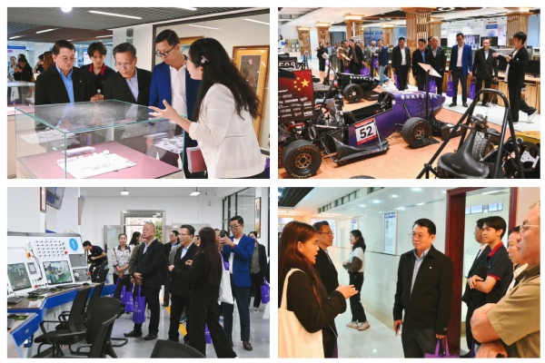 会谈结束后,在柬埔寨交换生的全程陪同下,代表团先后参观了学校相关实验室及学生公寓等教学生活场所。在师生创作展厅,同学们的科创作品与艺术成果展现了扎实的实践能力。绿智汽车与交通现代技术实验室的实训设备与教学成果彰显了产教融合特色;工程训练中心的先进设施与学生公寓的完善配套,让代表团对我校的办学条件给予充分肯定。来访嘉宾纷纷表示,通过实地考察和深入交流,对我校的人才培养质量充满信心,未来将积极推动柬埔寨学生与我校的交流合作。