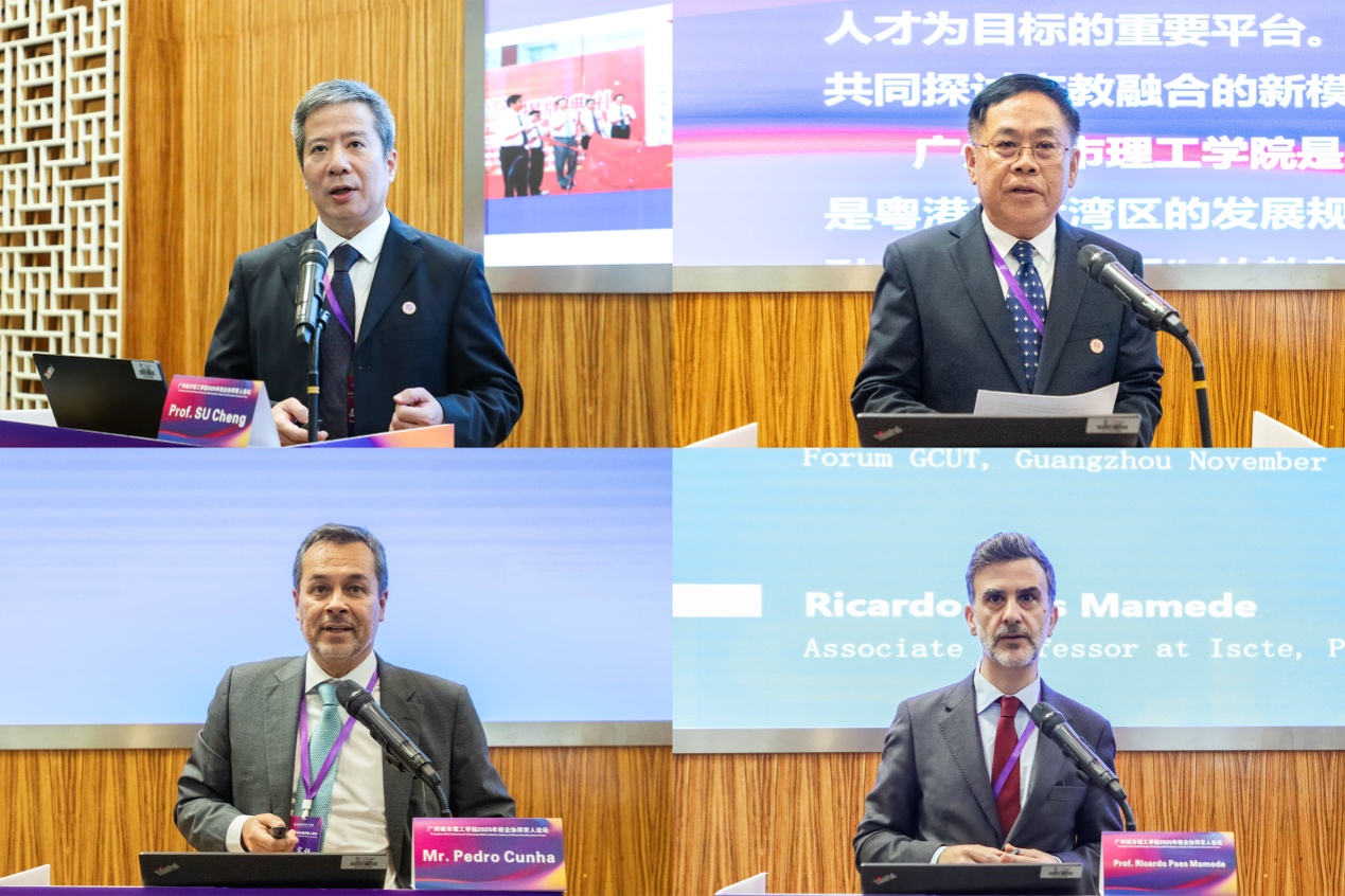 本网讯(记者 梁伟滔 戴思婷)11月13日,秋高气爽,异木棉花竞相绽放,由我校主办,国际商学院和国际交流与合作处承办,外国语学院协办的2025年国际校企协同育人论坛在行政楼703报告厅隆重举行。本次论坛是我校首次主办全过程使用英语进行的国际论坛,展示出我校日益提升的国际化办学水平与搭建高层次国际交流平台的能力。论坛以“国际商务新形势:探索全球胜任力应用型人才培养创新模式”为主题,汇聚了来自葡萄牙、美国、巴基斯坦、印度等国家的专家学者与企业领袖,共同探讨国际商务教育创新与全球胜任型人才培养的新路径。葡萄牙驻广州总领事馆(以下简称总领事馆)贸易与文化事务高级官员Mariana Amado da Silva女士、葡萄牙里斯本大学学院(以下简称里斯本大学学院)Ricardo Paes Mamede教授、JOINCO Import & Export Ltd.(以下简称JOINCO公司)首席执行官Pedro Cunha先生、中国区负责人Tiago Mateus先生、广州市圣瑞吉贸易有限公司创始人Shyju Thumbrayil先生、广州瀚卓药业有限公司创始人罗文航等嘉宾与近200名师生参加了论坛。学校副校长刘洊波教授作欢迎致辞,校长苏成教授作论坛主旨报告,会议由国际商学院院长安然教授主持。