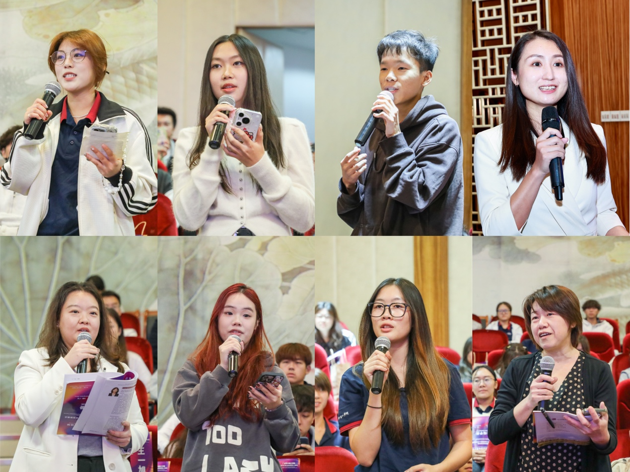 圆桌论坛现场互动热度持续升温:台下师生们先以AI在国际商务中的落地场景为切入点,继而把追问推向未来挑战——如何缩小课堂知识与国际真实商务之间的差距?国际营销课程如何借AI工具实现效率跃升?每一次提问都兼顾技术前沿的锐度与教育本质的温度,思想交锋层层递进,观点碰撞火花四溅。