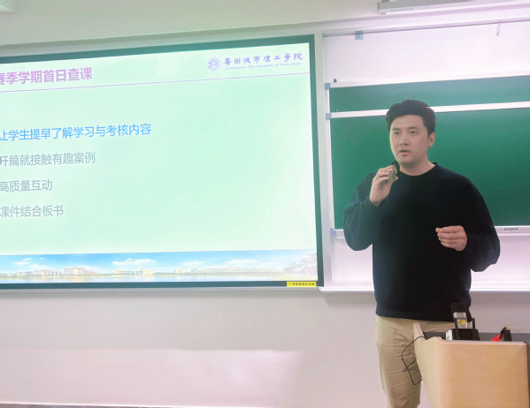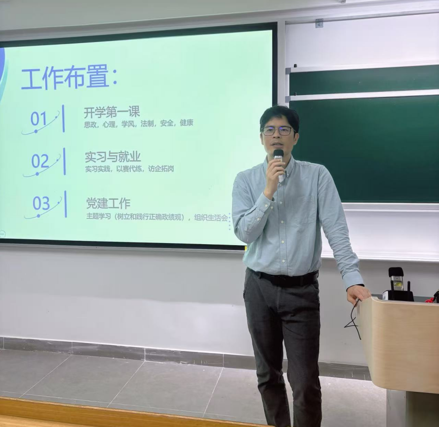 在教学科研工作部署环节,王金鹏聚焦教学提质、科研增效两大核心,通报了开学第一天学院领导带队查课的情况,强调全体教师要以严谨的教学态度、规范的教学行为,筑牢教学质量生命线,要求教师提前到岗、着装得体,强化课堂管理,引导学生前排就座,营造严谨有序、积极向上的教学氛围。他在会上分享了多位教师的优秀教学案例,提出“信心、兴趣、氛围、思路”四维教学法,引导全体教师创新课堂教学形式、丰富教学内容,着力打造高质量课堂。此外,他就补考安排、毕业论文答辩、教学资料归档等近期重点工作作出明确说明,确保教学工作有序推进;同时详细解读了横向科研项目管理流程,鼓励全体教师主动投身科研创新,积极申报课题,推动科研成果与教学实践深度融合;要求大家严守学术诚信底线,自觉抵制学术不端行为,以科研高质量助力教学高质量发展。