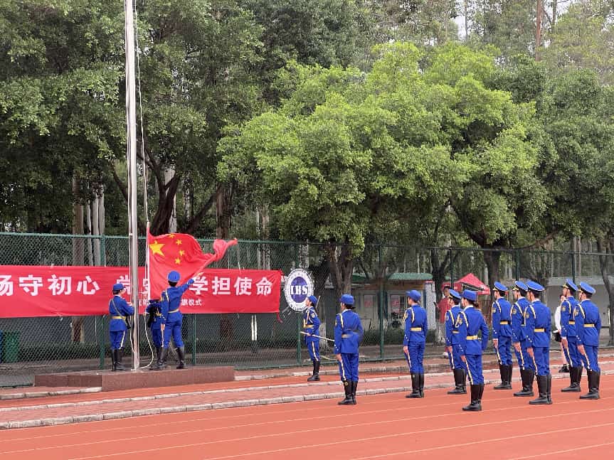 本网讯(记者 林毅 庄灵仪)3月23日,国际商学院在足球场举行升旗仪式暨“国旗高扬守初心,党史深学担使命”主题活动。国际商学院党总支副书记梁伟滔、团委书记、教工党员代表及全体学生参加本次活动。