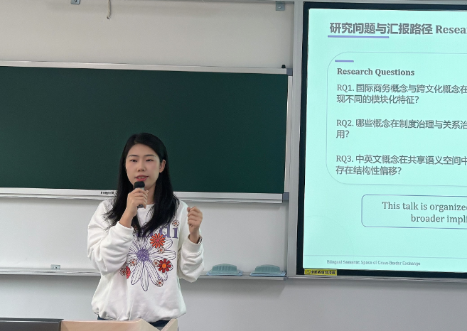 国际商务综合教研室副主任彭鑫怡围绕《基于大语言模型的跨文化语义距离测算》展开分享,介绍了大语言模型在语义理解、文化认知分析及跨文化研究中的应用潜力,体现出人工智能技术在语言、文化与管理等交叉领域中的广阔前景,也为学院教师开展跨学科研究提供了有益启示。